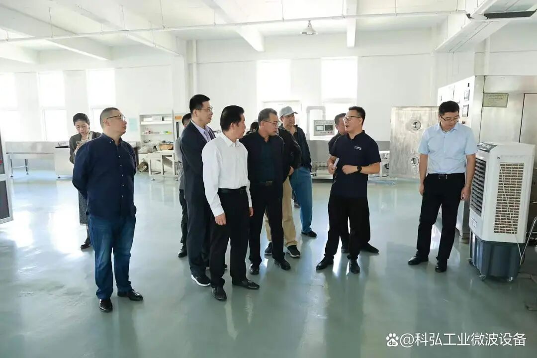 首先科弘公司董事长吴笑囡、总经理张成海等科弘团队成员陪同代表们深入参观了山东科弘微波能有限公司的生产车间、研发中心及实验室,科弘张成海像代表们介绍了设备生产流程,实地观摩工业微波技术中试场景,直观感受企业技术实力。